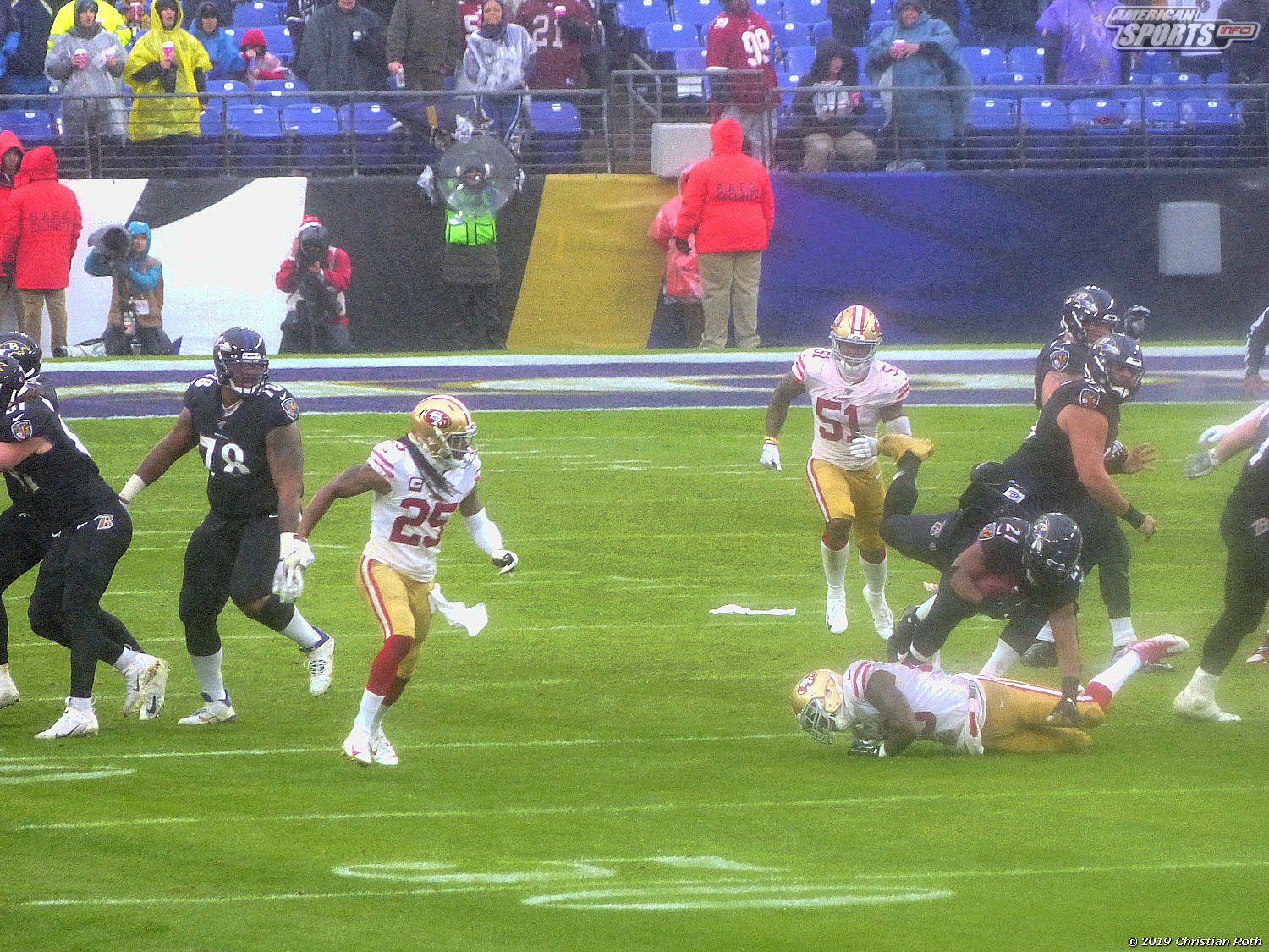 Und so ist LJ8, Houdini, the Big Truss Guy! Sein Move, der den 49ers Spieler schön auf dem Hintern rutschen ließ wurde ganze FÜNF Mal wiederholt. Zur Freude von uns Fans. Und sein TD brachte die Stimmung zum Kochen.