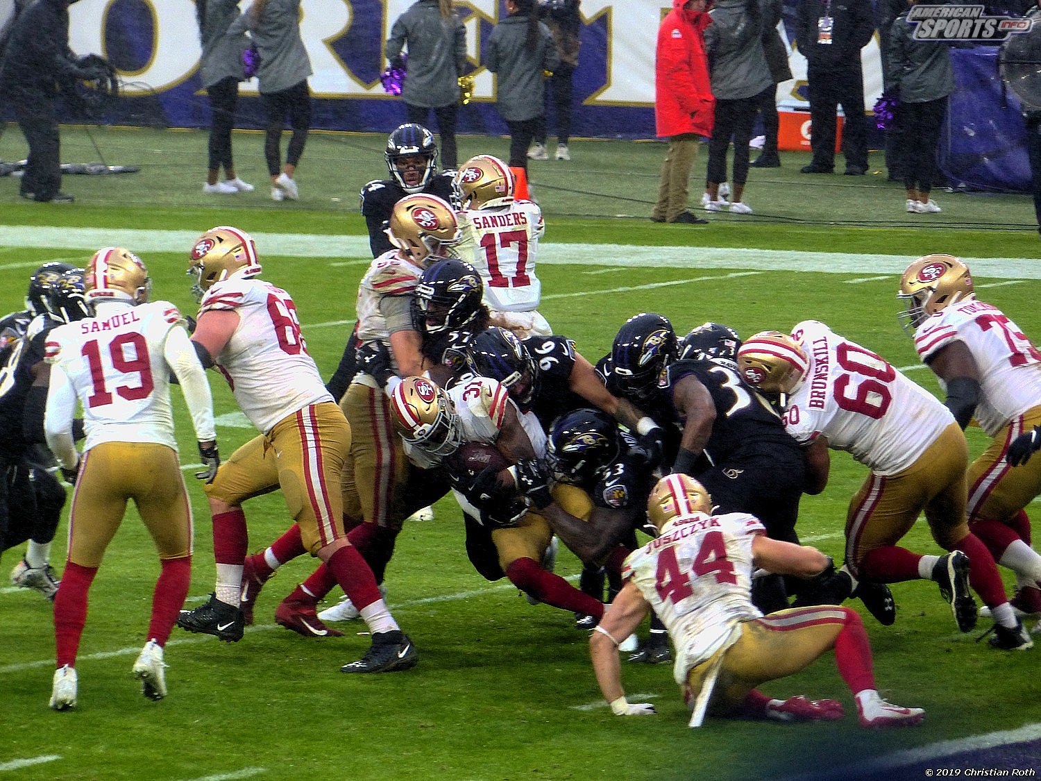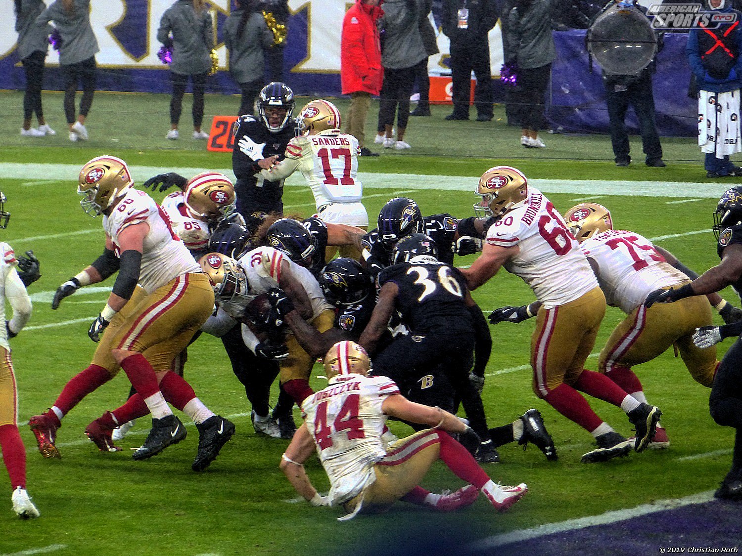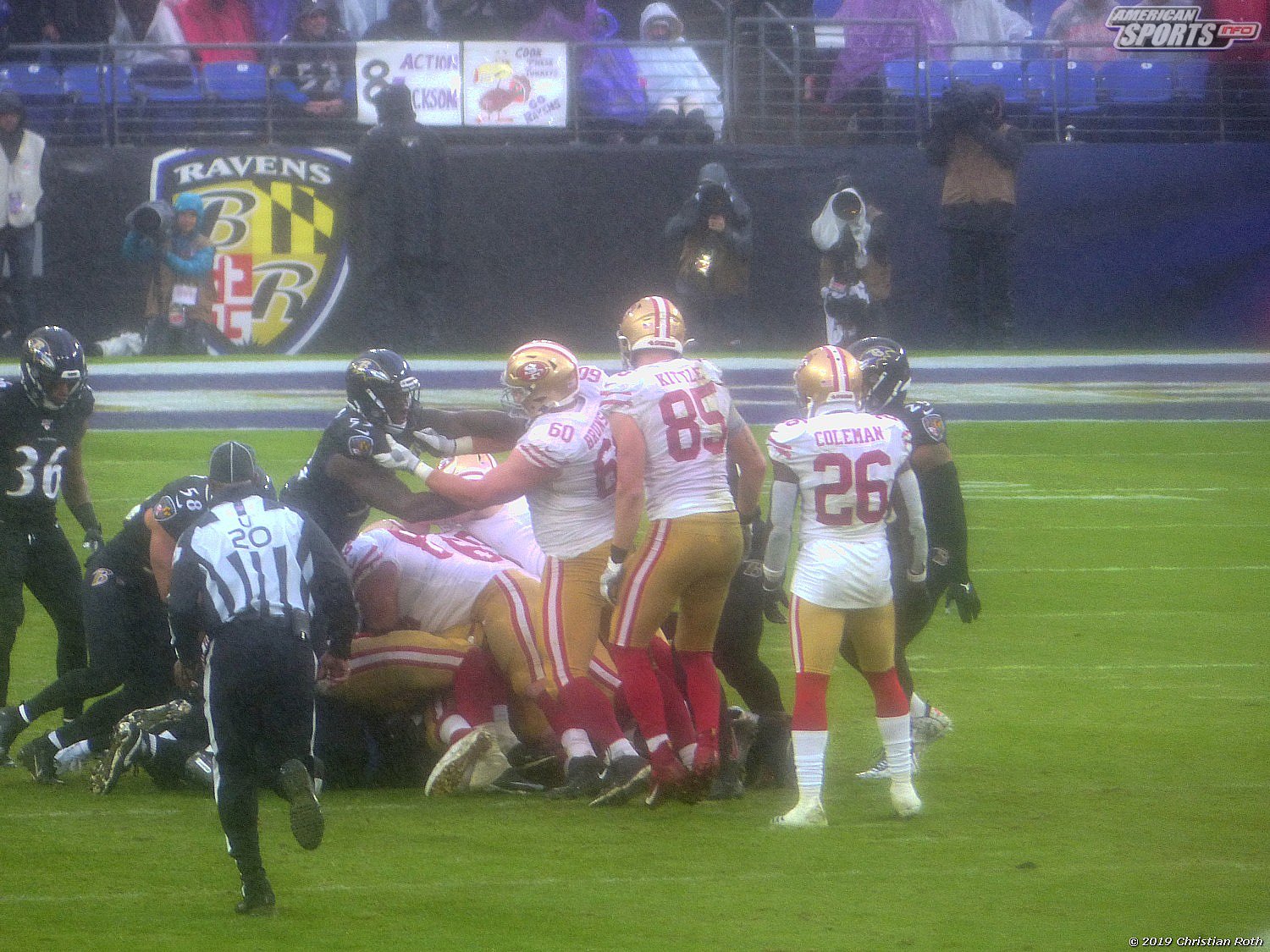 Die Achterbahn der Gefühle ging also weiter. Touchdown der 49ers durch einen grandiosen Laufen, den man neidlos anerkennen muss, und sehr schlechter Tackles. Fieldgoal durch the G.O.A.T. Justin Tucker und ein verschossenes FG der San Franziskaner. Sorry, Christian, aber ich muss andere an diesem wunderbarem Versprecher teilhaben lassen.