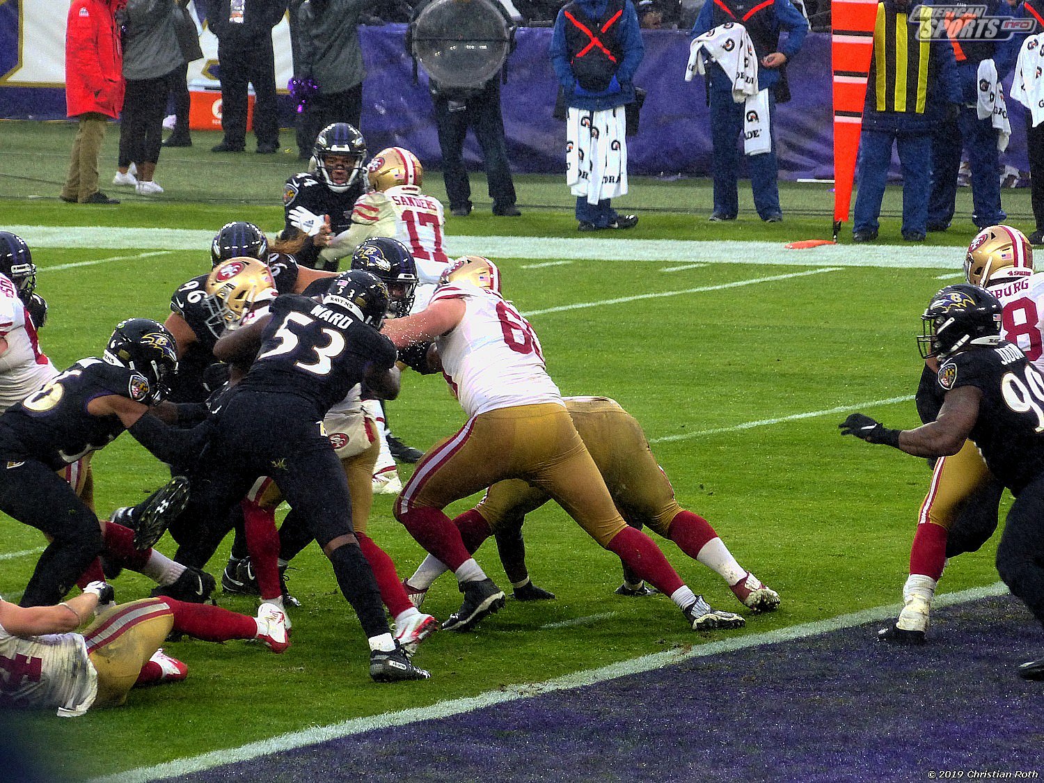 Der erste TD der ravens wurde somit mit knapp 10 neuen Freunden gefeiert. Beim zweiten lag man sich fast in den Armen. So sind sie halt in Charm City.