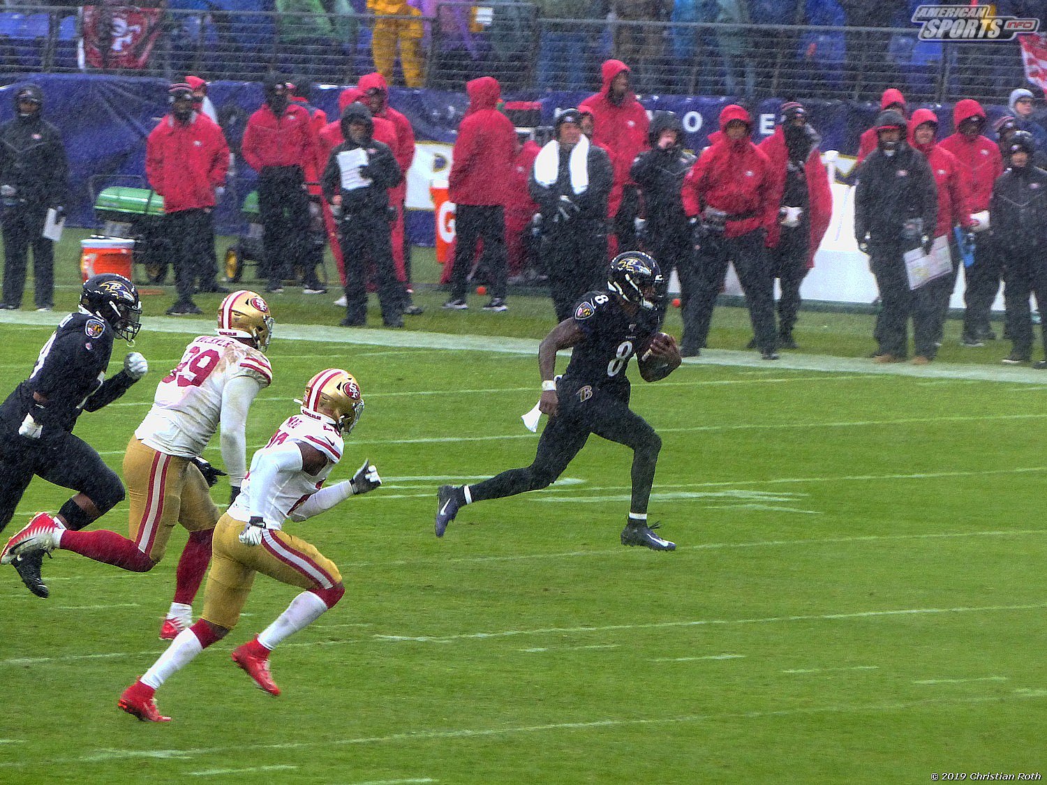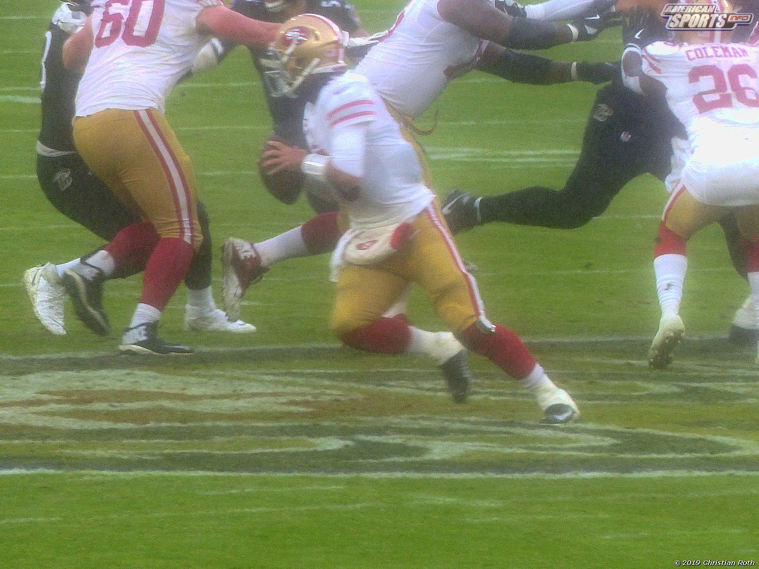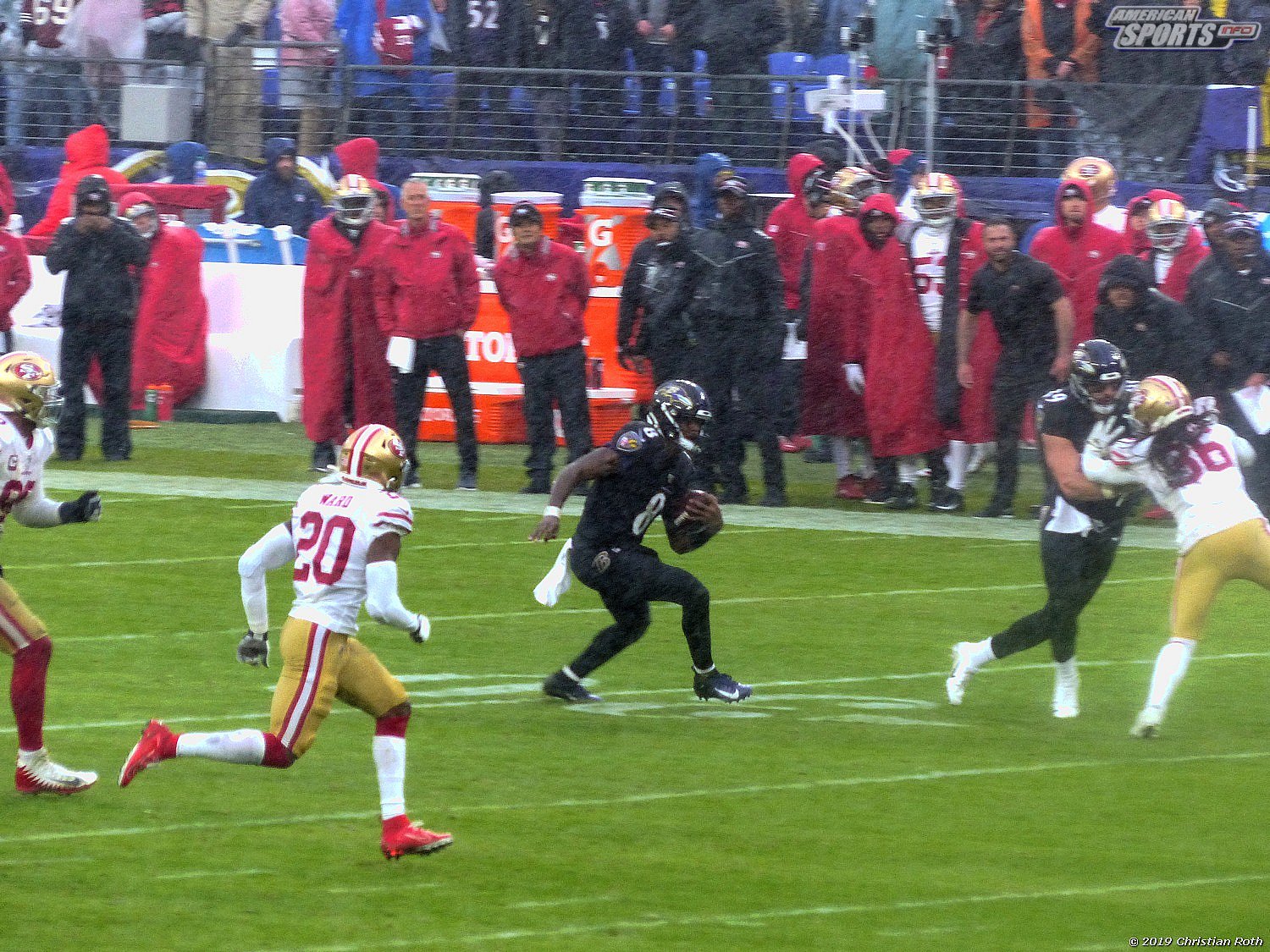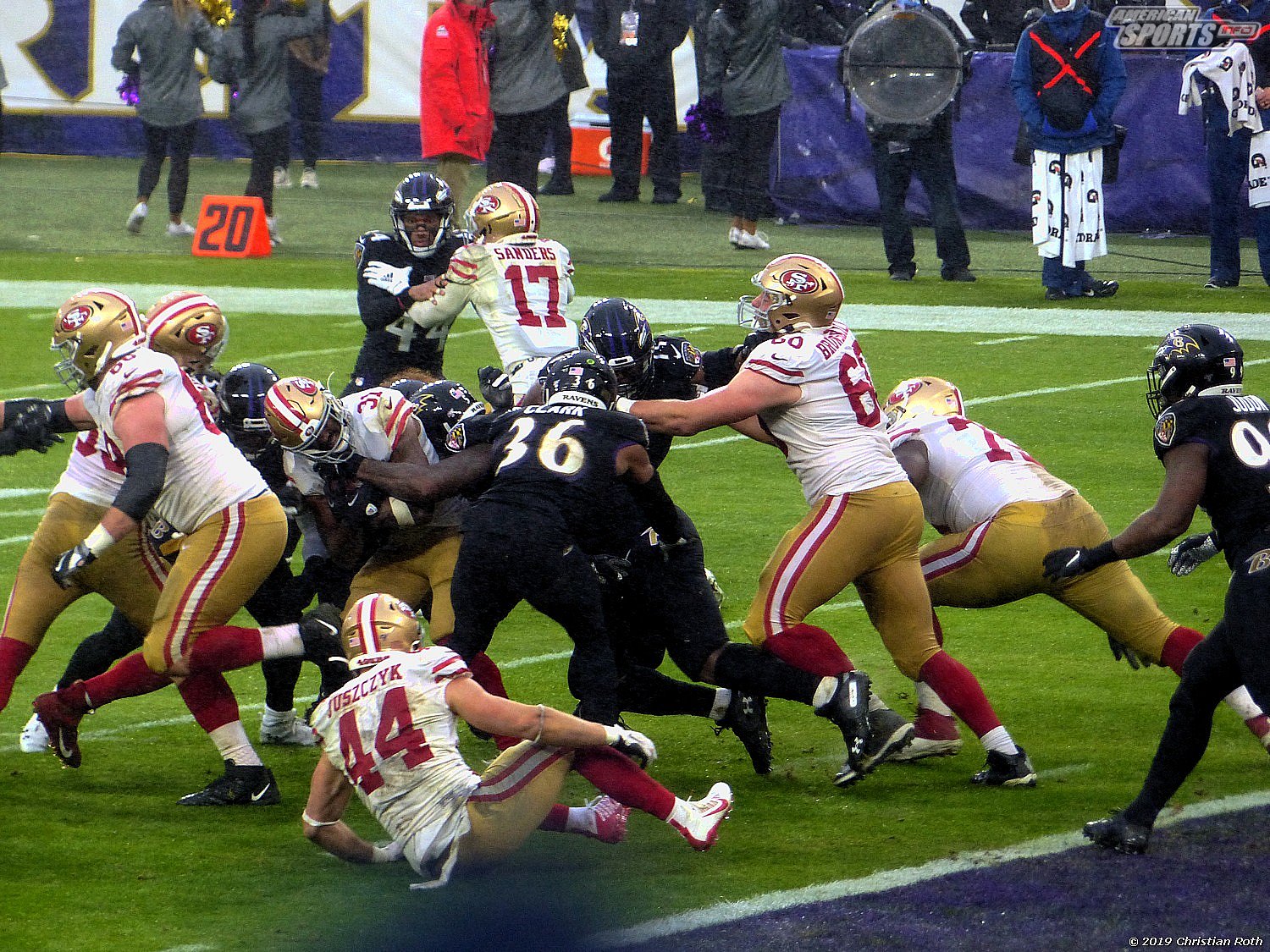 Die Achterbahn der Gefühle ging also weiter. Touchdown der 49ers durch einen grandiosen Laufen, den man neidlos anerkennen muss, und sehr schlechter Tackles. Fieldgoal durch the G.O.A.T. Justin Tucker und ein verschossenes FG der San Franziskaner. Sorry, Christian, aber ich muss andere an diesem wunderbarem Versprecher teilhaben lassen.